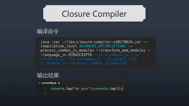 我们开始说的三个工具,rollup和webpack表现不理想,那closure compiler又如何呢?