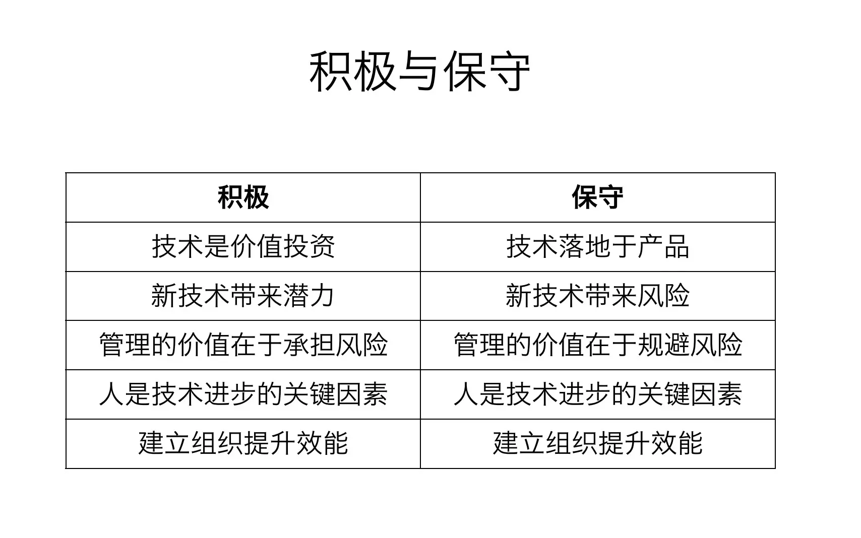 在月影的分享中,有关管理者 “积极” 和 “保守” 的问题,也令人深省。