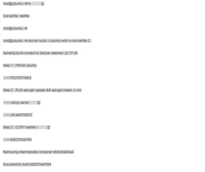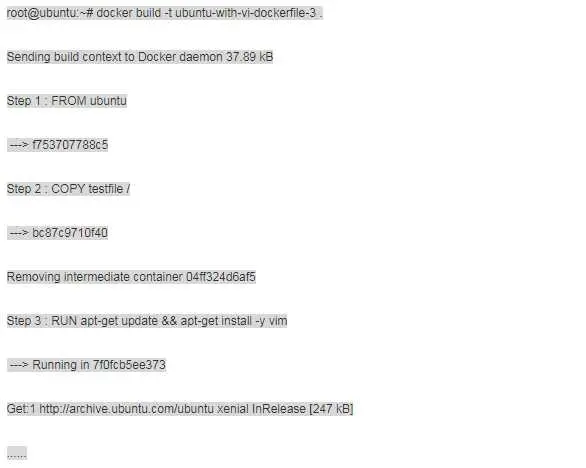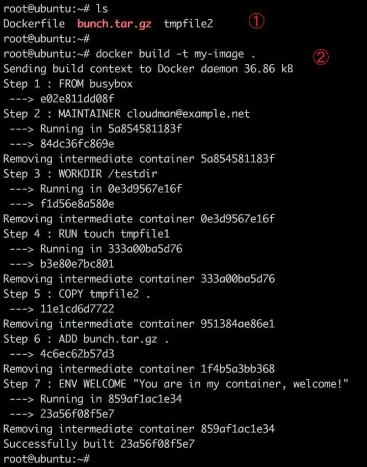 ② 依次执行 Dockerfile 指令,完成构建。