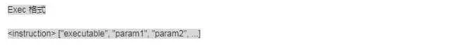 - Exec 格式CMD ["executable","param1","param2"]