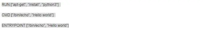RUN、CMD 和 ENTRYPOINT 这三个 Dockerfile 指令看上去很类似很容易混淆。本节将通过实践详细讨论它们的区别。