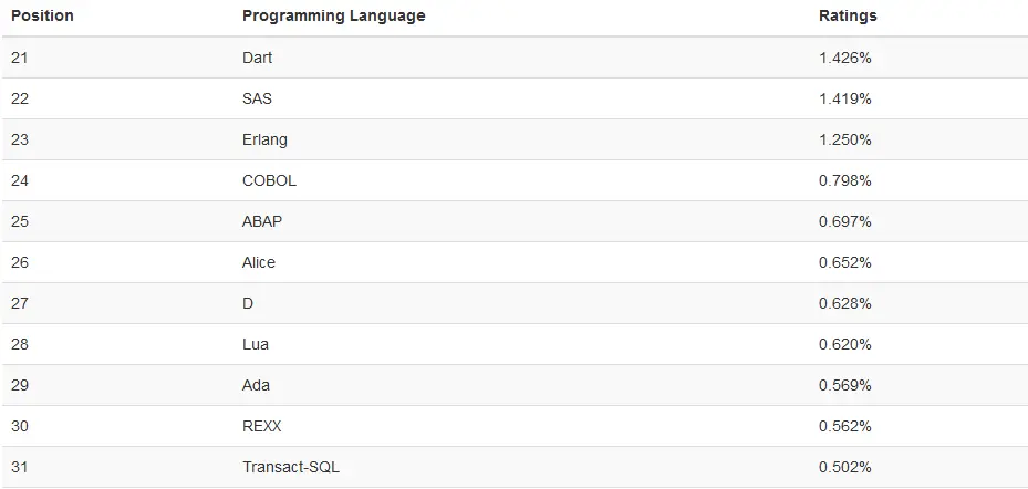 其他编程语言排名