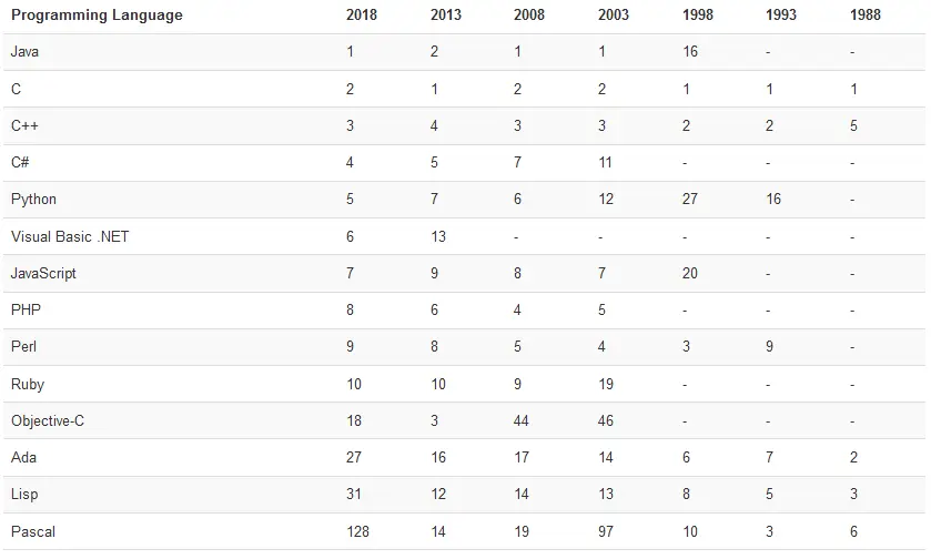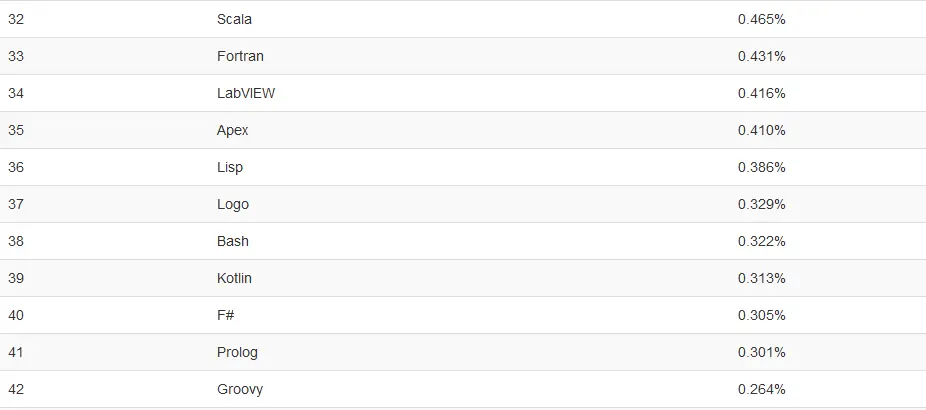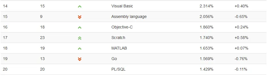 这个排行榜可以用来考查你的编程技能是否与时俱进,也可以在开发新系统时作为一个语言选择依据。