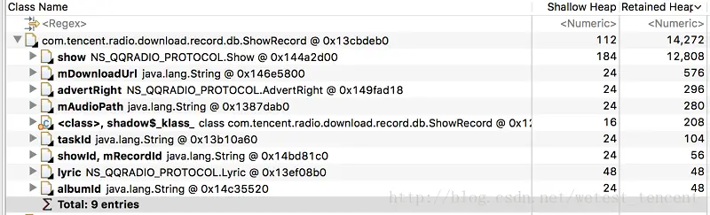 3.1 和 3.2 都会存储节目信息,而节目信息相关的jce结构都比较大,通过MAT,可以看到 Show:12K, Album:10K, 一个ShowInfo同时包含了上面两种数据结构。