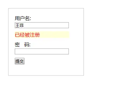 思路:在input中输入用户名失去焦点后,在事件处理程序中利用jQuery的Ajax方法发送请求到服务器,请求中携带了填入input的值;在服务器的后台接口页面中,对请求中的参数与数据库中获取的用户名进行比较验证,并在响应中携带一个值(存放在data中),给前端做判断。