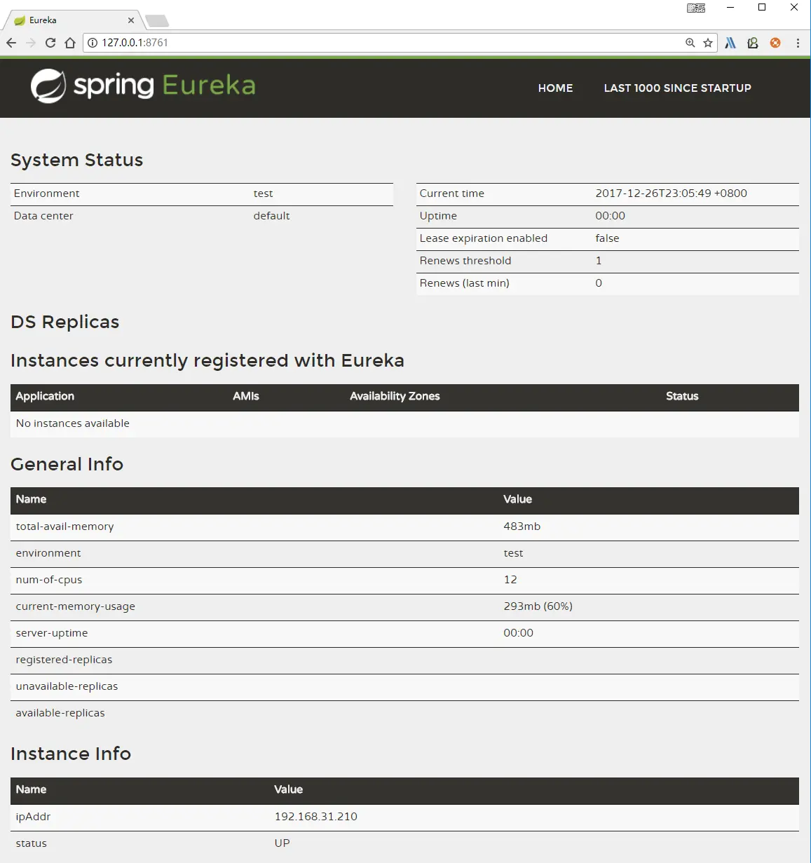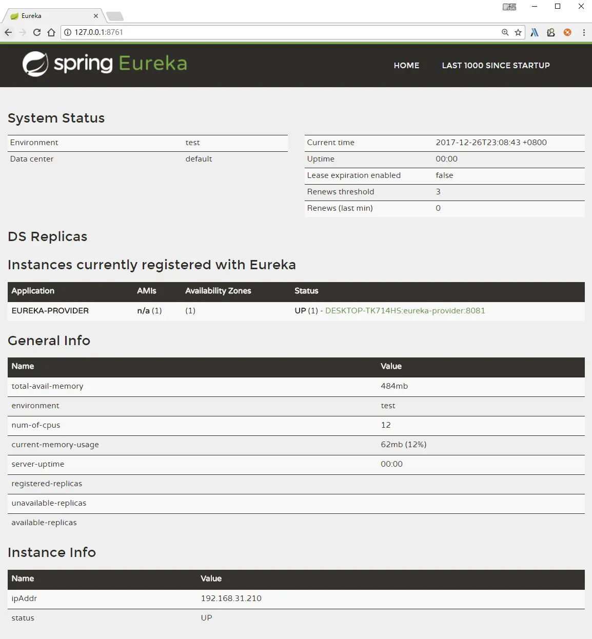 启动该工程后,再次访问启动工程后:http://localhost:8761/