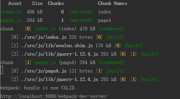可以看到index.js 就只有457 bytes了,pageA.js 227bytes。vendor.js 是集成了jquery+avalon,所以有488kb。
