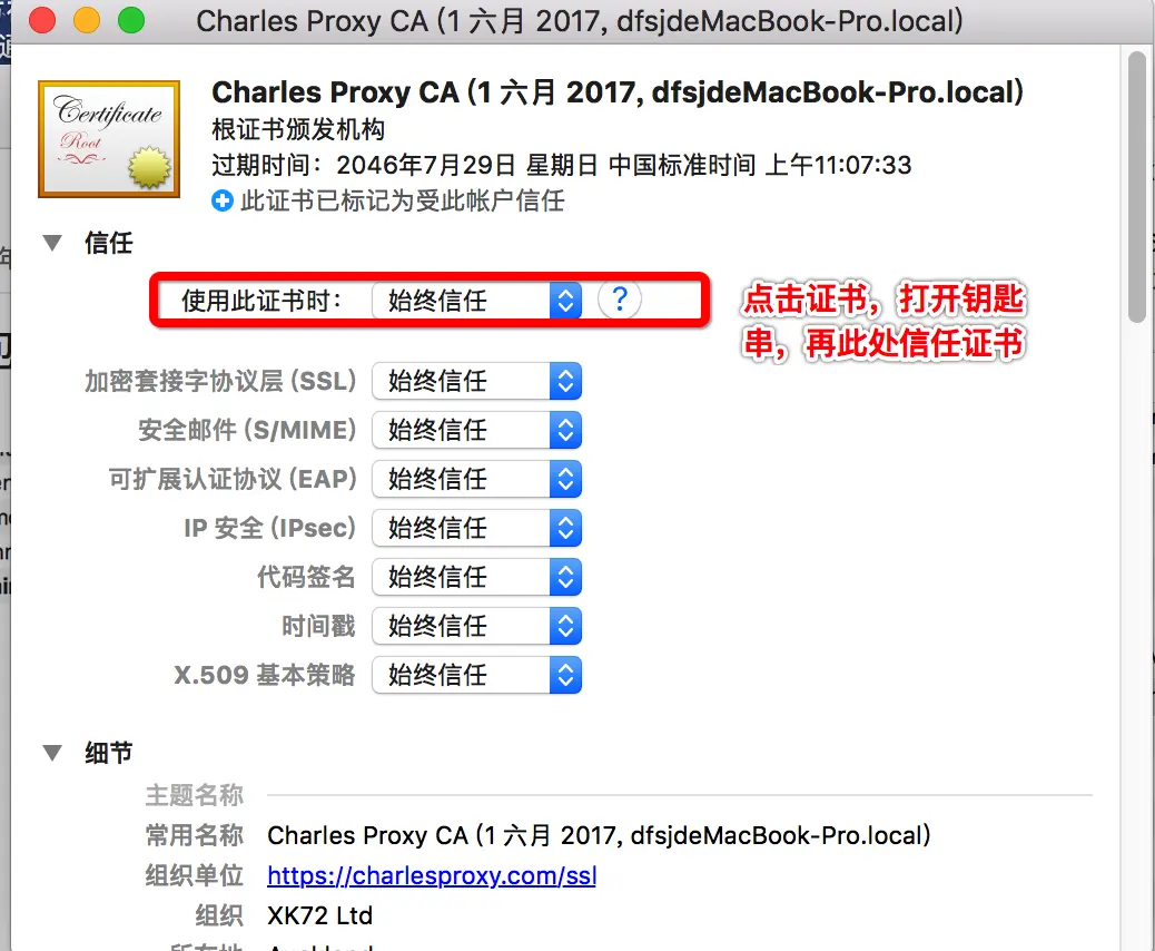 - 注意2:iOS 10.3系统,需要在 设置→通用→关于本机→证书信任设置 里面启用完全信任Charles证书