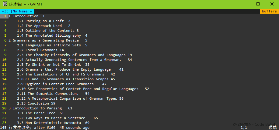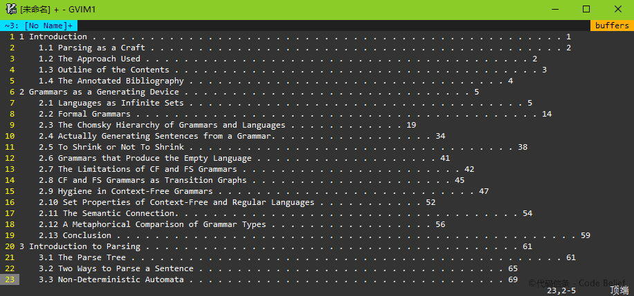 从 PDF 中复制目录文本,并粘贴到 Vim 中: