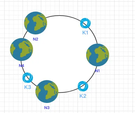 这样按照顺时针方向就可以把 k1 定位到 N1节点,k2 定位到 N3节点,k3 定位到 N2节点。