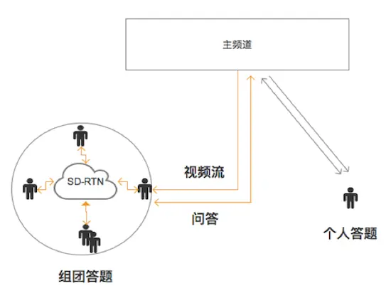 直播可以选择传统的CDN模式,延时一般在2s以上。这种方式,要做不同观众间画面和答题计时的同步,否则会因为部分观众网络延时过长,造成答题时间过短。