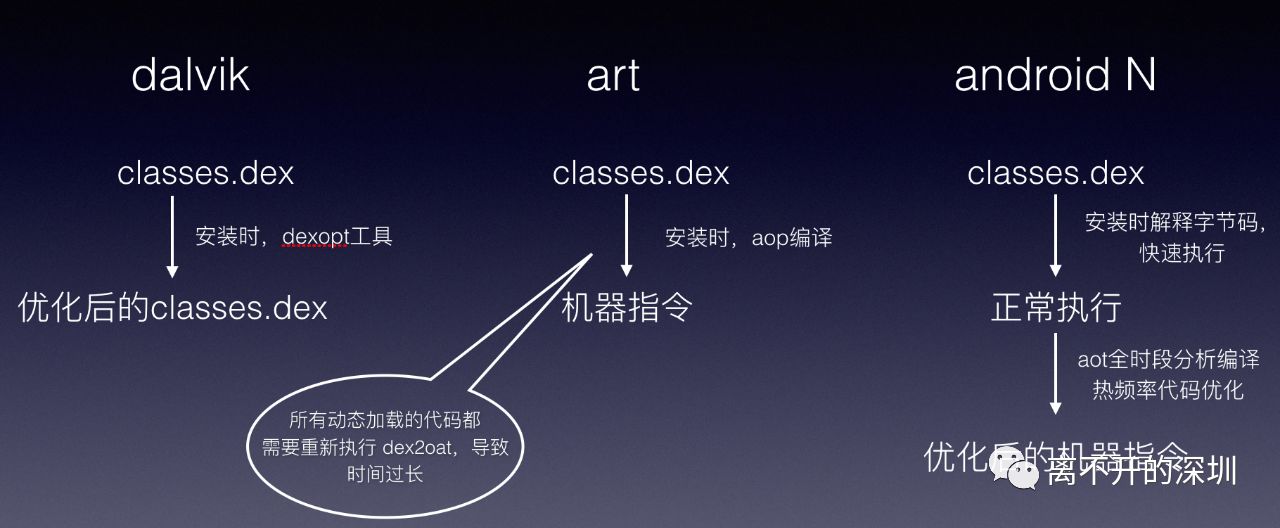 安卓系统中虚拟机的发展从dalvik到art再到混合编译;其编译方式也有不少变化,所以对补丁修复也有影响