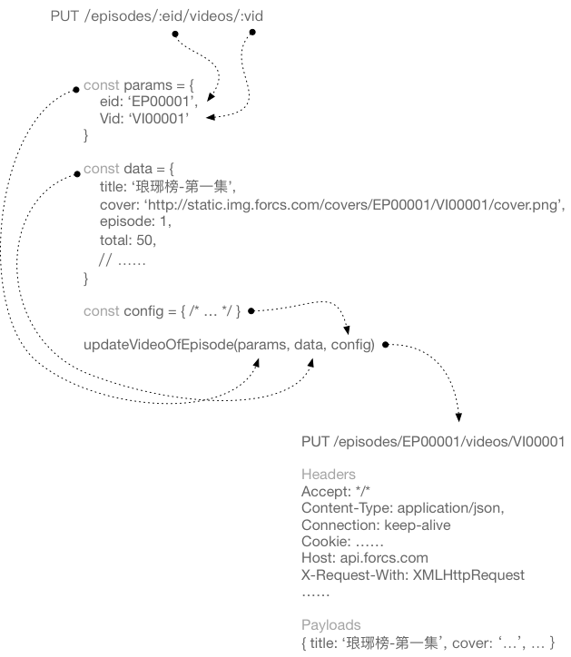 bindUrls()灵活度还有提升的空间。现在的版本对urls这个参数只能支持字符串类型的value,我们觉得urls的value除了可以是字符串外,还可以是其他类型,比如plain object。同时,key的前缀只能是create、update、get、delete四个,感觉有些死板,我们想可以支持更多的前缀,或者说方法的名称不一定要局限于某种格式,可以自由的给方法命名。