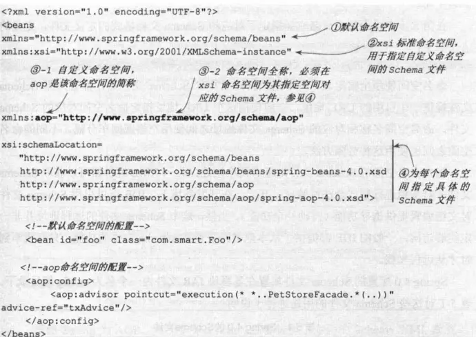 xmlns属性定义命名空间,命名空间就是所有文件定义bean时带的前缀,像aop:config,这个标签的aop就是aop命名空间 ,没有加命名空间,就是默认的命名空间.