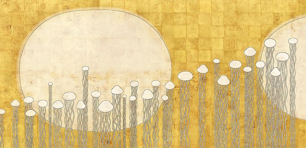在银座图形画廊(Ginza Graphic Gallery)第350届专题展“21世纪琳派海报”上展出的海报。 以贴了金箔的画面为拍摄背景,映照在海上的椭圆形月亮与有机形态的水母(海月)相互重叠。以大胆的构图展现自然形象,用突出公式化的手法展现琳派艺术。