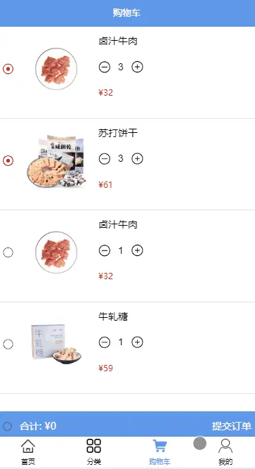 - vue-touch(用于实现购物车左滑删除功能) *动画(vue原生transition实现原生app的效果)