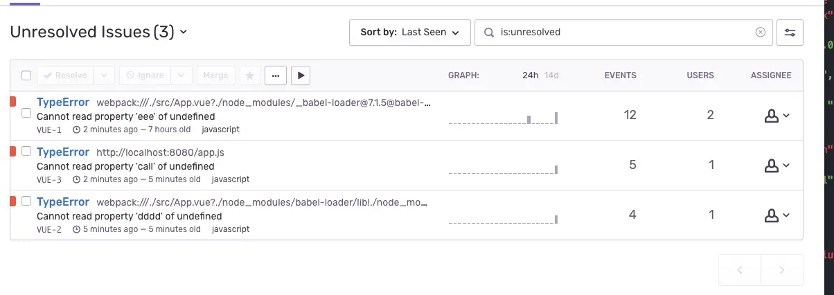sentry是国外开源的错误监控库,有线上环境,也可以部署到自己的服务器,可以跟踪错误出现的步骤和错误的详细信息,方便开发人员进行快速定位。