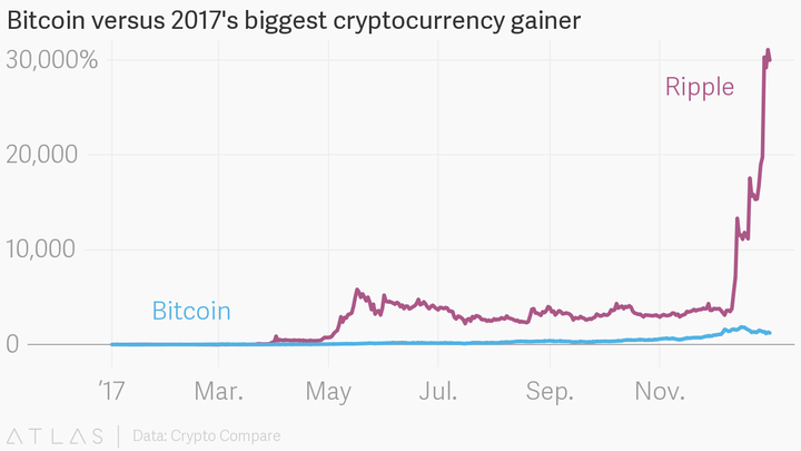 以下是 2017 年 Ripple 与比特币相比的情况: