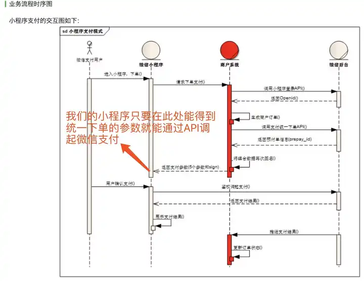 我们来看一下微信小程序支付的的业务流程: