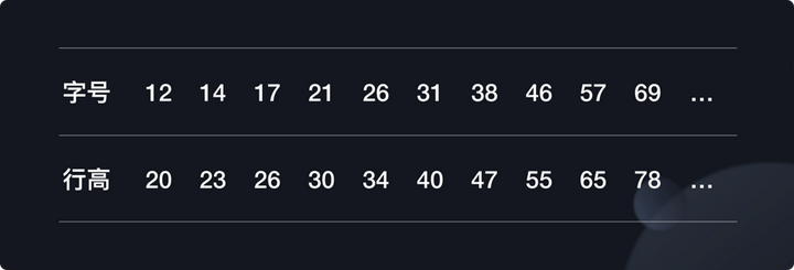 - 但是基于设计经验,同时不给布局造成压力,我们希望行高的增长速度能够随着字体的增长逐渐趋向于缓慢,并且最终不要超过 1 倍。