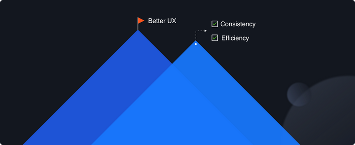 当然,设计体系的最终极目标依然是为了实现更好的用户体验。而为了这一目标,我们需要先建立起一个强大的基础设施来解决可控性以及效率的问题。目前在网络上的多数有关于设计体系的专题文章基本上也都是集中在这两块做解读,而在蚂蚁我们的设计体系已经往前探出了一小步。