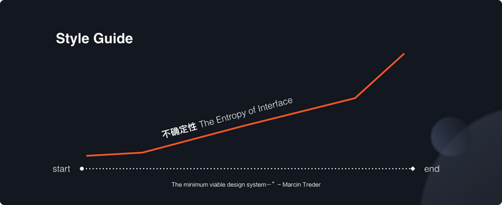 然而这种形式并不能实质性的解决问题。当产品开始不断的迭代更新、团队人员的加入或者离开、外部技术的变革、用户使用习惯的变化等等这些情况发生的时候,基于当下设计现状以及习惯的静态内容就难以应对。随着时间的推移,设计产出的不确定性就会越来越高。