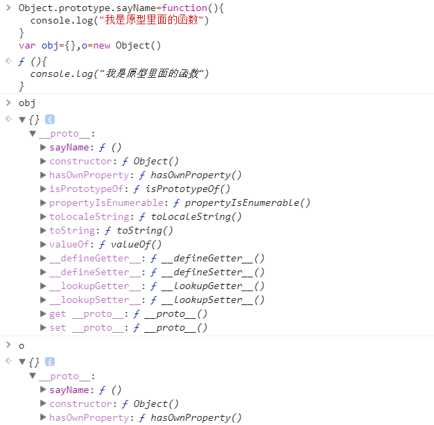 创建对象一帮有多种方法: 1、用字面量创建对象 obj={}, 2、用obj=new Object()创建对象, 3、用Object.create(null)创建对象。 用{}和new Object()创建对象都有一个缺点,创建的对象并不是干净的对象而是继承了Object对象原型的对象。 用{}和new Object()创建对象是等价的。{}其实是运用了Object函数创建对象的。 但是ES5为我们提供了一种创建完全干净的对象的方法。因为null表示没有原型对象 用事实说话看代码效果: a、看{}和new Object创建对象的效果 Object.prototype.sayName=function(){ console.log("我是原型里面的函数") } var obj={},o=new Object() //obj,对象都继承了Object的原型 obj.sayName() // console.log("我是原型里面的函数") o.sayName() // console.log("我是原型里面的函数")
