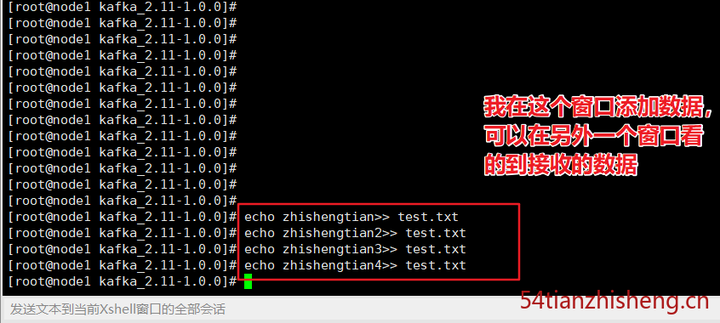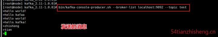 使用 kafka-console-producer.sh 发送消息: