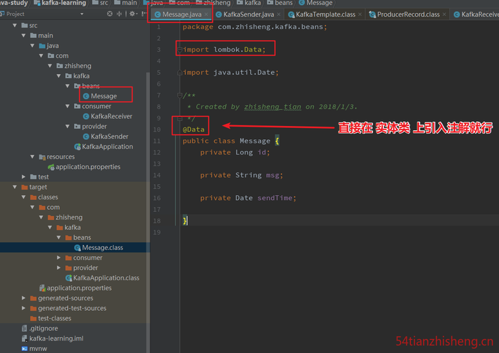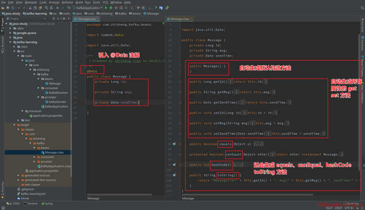 这个注解用在 类 上,会生成含所有参数的构造方法,get 方法,此外还提供了equals、hashCode、toString 方法。