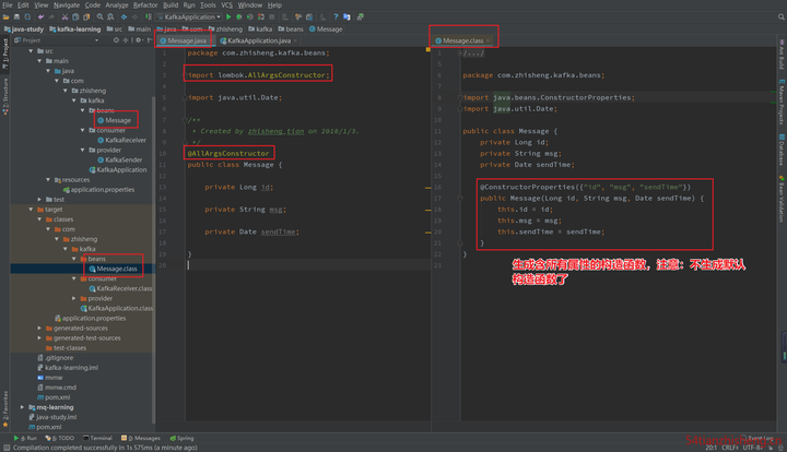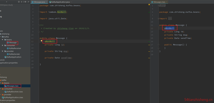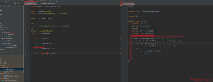 注解在 属性 上,会自动产生一个关于此参数的非空检查,如果参数为空,则抛出一个空指针异常,也会有一个默认的无参构造方法。
