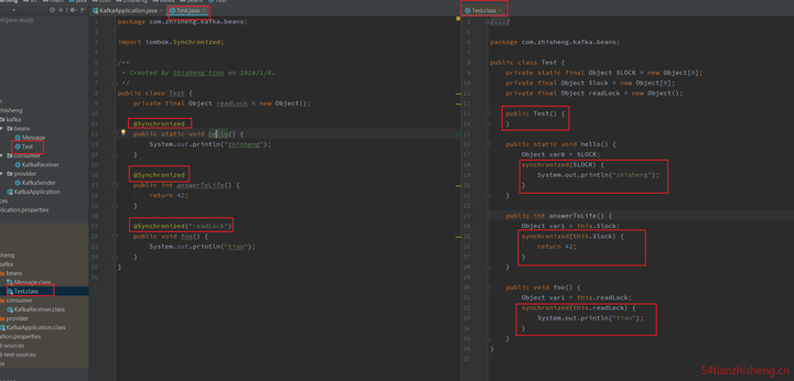 这个注解用在 类方法 或者 实例方法 上,效果和 synchronized 关键字相同,区别在于锁对象不同,对于类方法和实例方法,synchronized 关键字的锁对象分别是类的 class 对象和 this 对象,而 @Synchronized 的锁对象分别是 私有静态 final 对象 lock 和 私有 final 对象 lock,当然,也可以自己指定锁对象,此外也提供默认的构造方法。