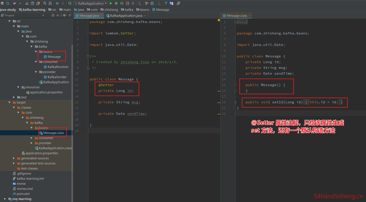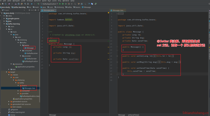 注解在 属性 上;为单个属性提供 set 方法; 注解在 类 上,为该类所有的属性提供 set 方法, 都提供默认构造方法。