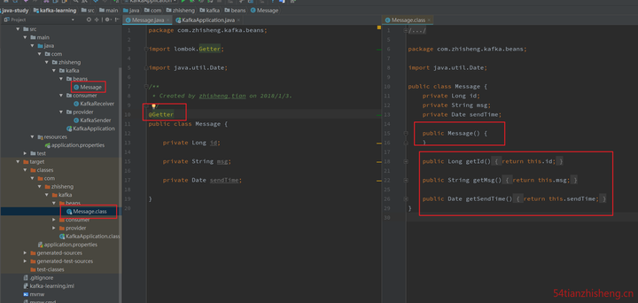 注解在 属性 上;为单个属性提供 get 方法; 注解在 类 上,为该类所有的属性提供 get 方法,都提供默认构造方法。