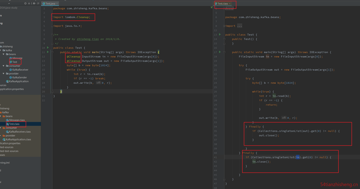 这个注解用在 变量 前面,可以保证此变量代表的资源会被自动关闭,默认是调用资源的 close() 方法,如果该资源有其它关闭方法,可使用 @Cleanup(“methodName”) 来指定要调用的方法,也会生成默认的构造方法