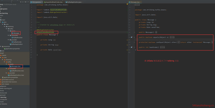 注解在 类 上, 可以生成 equals、canEqual、hashCode 方法。