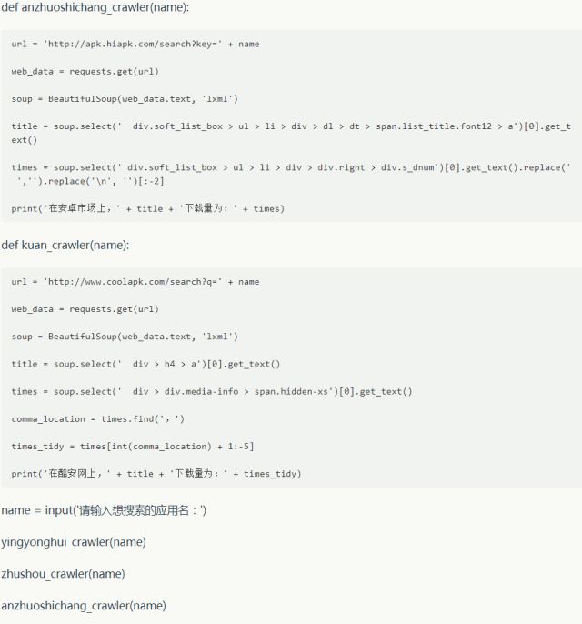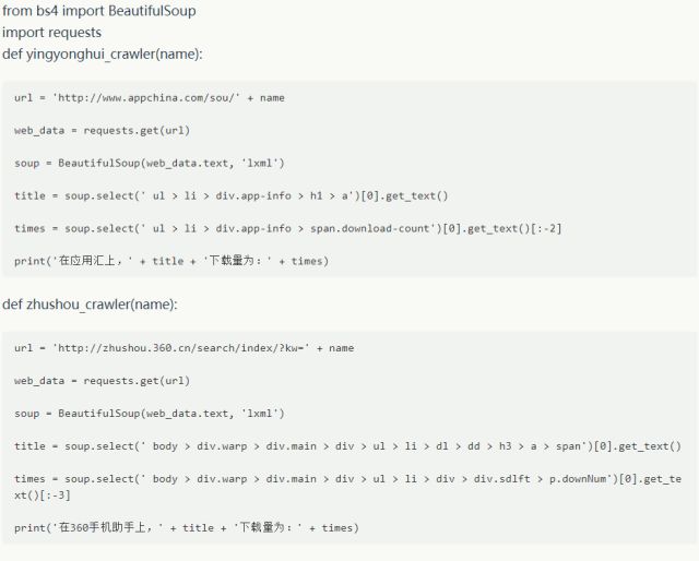 因为我们要同时抓取多个网站的结果,所以我们根据上文的例子自定义多个函数并统一调用。