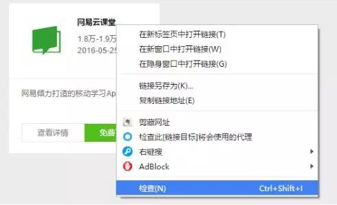 在Chrome浏览器中,在想爬取的内容上点右键,选“检查”。