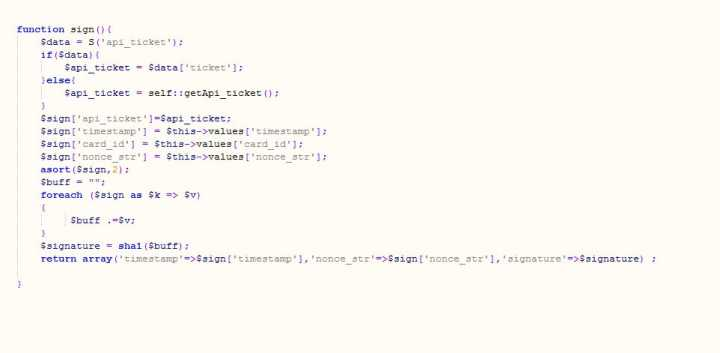 因为我是在微信公众平台创建卡卷的,所以code和openid并不需要用到,所以实际参与签名的是api_ticket、timestamp、card_id、nonce_str这4个,card_id在公众平台创建卡卷的时候就能看到,timestamp和nonce_str这两个时间戳和随机数生成就不用说了很简单,这里重点说一下api_ticket 。