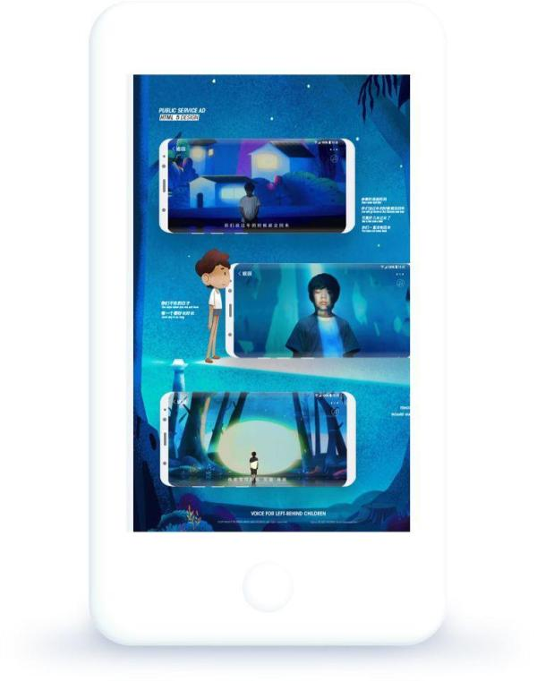 点评:腾讯这个公益H5做得很有水准,无论是策划、内容,还是视觉。虚实结合,小男孩是真的,场景是画的,很特别的展现形式。