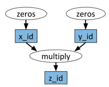 计算图示例。白色椭圆表示任务,蓝色方框表示对象。箭头表示任务依赖于一个对象,或者任务创建了一个对象。
