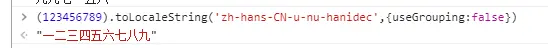 (123456789).toLocaleString('zh-hans-CN-u-nu-hanidec',{useGrouping:false}) //"一二三四五六七八九"
