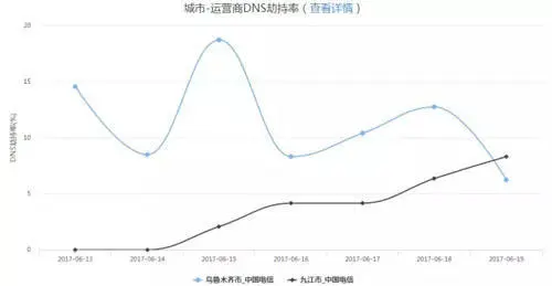 另外,还可以对 DNS 劫持、链路劫持、访问出错、访问速度较慢的问题进行告警,以 DNS 劫持数据的展示举例: