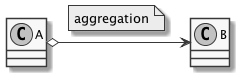 plantuml: o- 或者 o-> // 空心菱形(+箭头)