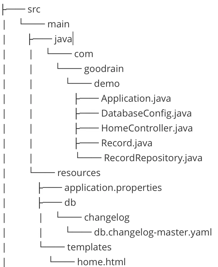 云帮提供Spring-boot-mysql-demo的相关配置目录结构如下,配置文件内容仅供参考。