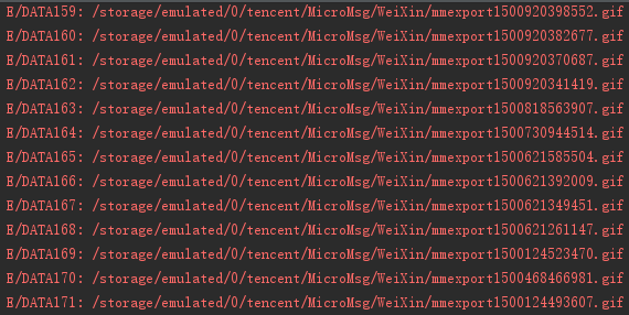 在讲解功能的实现过程之前,先简单介绍一下如何使用。更新后的PhotoFactory可以根据图片的路径、名称或图片格式等条件搜索图片,执行搜索后返回符合条件图片的list。这里我们以筛选出手机本地所有gif图片为例: