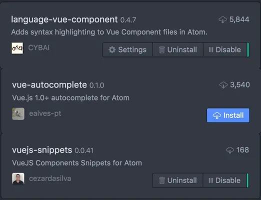 Homebrew 1.0.6(Mac)、Node.js 6.7.0、npm 3.10.3、webpack 1.13.2、vue-cli 2.4.0、Atom 1.10.2