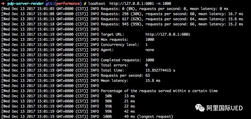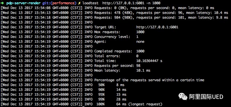 通过loadtest请求1000次,统计平均RT, 初始RT为15.8ms