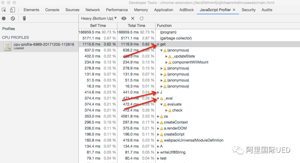 第二耗性能是的 J方法,里面大部分是各个组件的render时间,暂时略过,以同样的方式对 _eval方法进行一次优化, RT降为10.1ms.