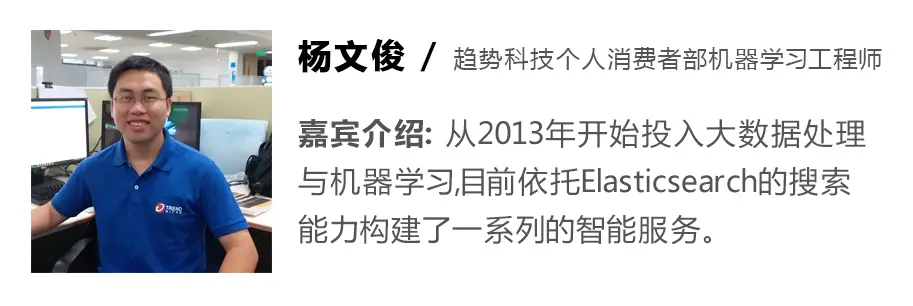 内容来源:2017年6月10日,趋势科技个人消费者部机器学习工程师杨文俊在“Elastic Meetup 南京”进行《Elasticsearch辅助的智能客服机器人》演讲分享。IT 大咖说作为独家视频合作方,经主办方和讲者审阅授权发布。