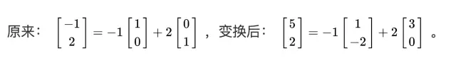 这其中的区别就是基向量不一样了,而线性组合的系数 -1 与 2 保持固定不变。